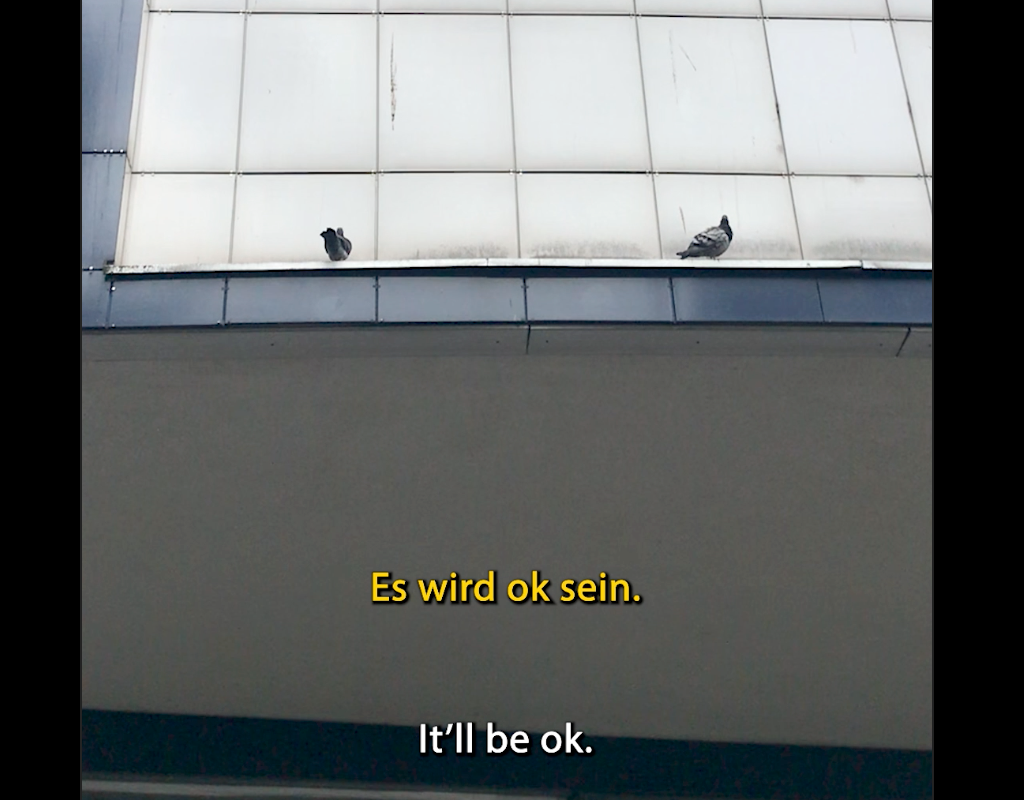 Two pigeons have a chat about humans. Entstanden und gezeigt im Rahmen von City of Play, Rhine-Ruhr 2025 FISU World University Games (Videoarbeit, 2025)